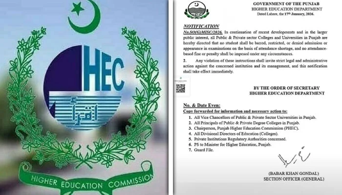 ہائر ایجوکیشن کمیشن آف پاکستان (HEC) سے منسوب ایک نوٹیفکیشن سوشل میڈیا پر تیزی سے وائرل ہوا، جس کے باعث پنجاب بھر کے طلباء میں شدید کنفیوژن پیدا ہو گئی۔